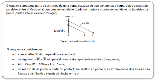 De acordo com as informações relativas ao esquema, o número máximo de estais que estão fixados do ponto A ao ponto B e que têm a outra extremidade na semirreta BC é